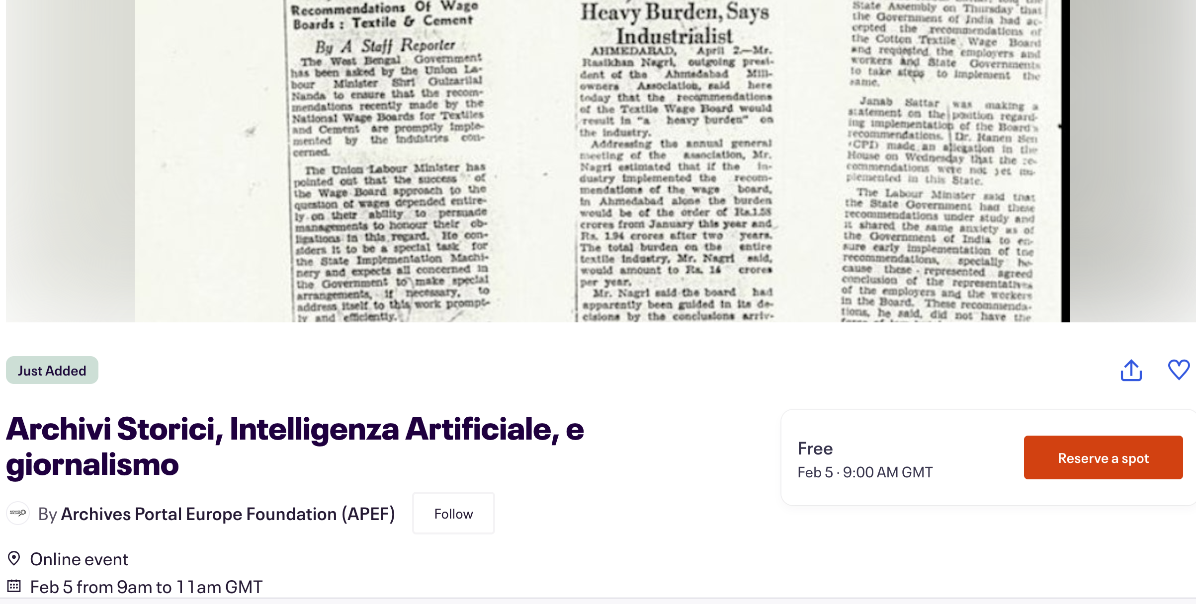 We are happy to announce that on the 5th February the Ordine dei Giornalisti, the Italian chartership of professional journalists, will host us for a webinar on "Historical archives, AI, and Journalism": we will explain how journalists can use historical archives in their practice, especially thanks to new technologies and AI in particular. The workshop is run by journalist and media expert Alberto Puliafito, and it is included in the official training of the Ordine.