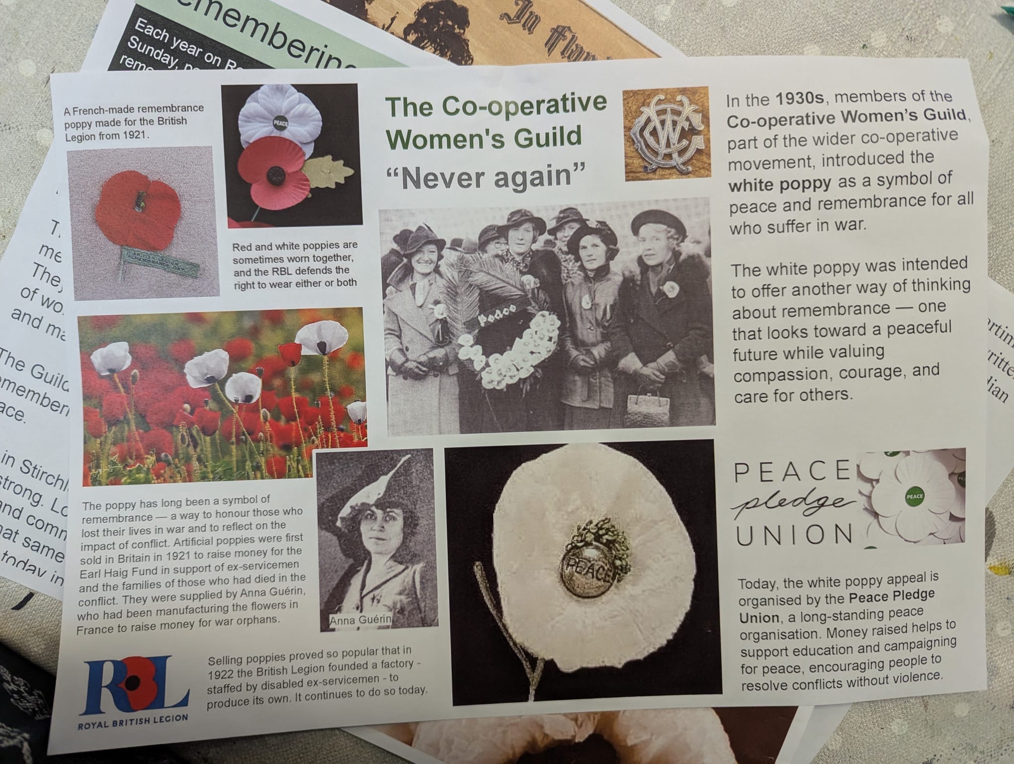 Remembrance Day is an annual event held on November 11 to celebrate the end of World War I, and to honour all those who died in conflicts, particularly soldiers. It is also known as Armistice Day, after the armistice that ended the war at 11 a.m. on the 11th November, in 1918 (the 11th hour of the 11th day), and it started to be celebrated as such since 1919, growing over the years into a celebration of the sacrifice of the soldiers, but also a pacifist statement. Since 1921, the "Poppy appeal" is an official campaign by the British army, selling red poppies to raise funds for veterans. Alongside red poppies, you will see in the UK these days white poppies, a symbol for remembrance of all victims of war, including both civilians and military personnel. It represents a commitment to peace, and challenges the militarization and glamorization of war. It was first introduced in 1933 by the Co-operative Women's Guild, who wanted to emphasise the "never again" message of peace.