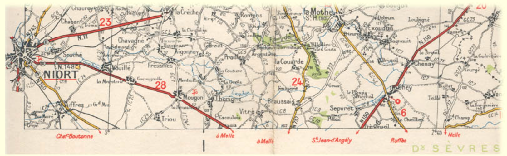 The Michelin maps became in the 1930s the most accurate description of France and French road; so much that the guides were hijacked by the Nazis to draw their own maps, by retracing the Michelin maps – removing the panoramic views (in green).