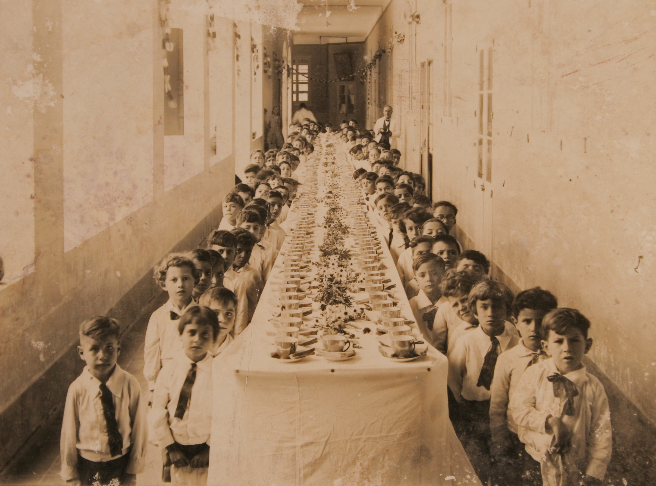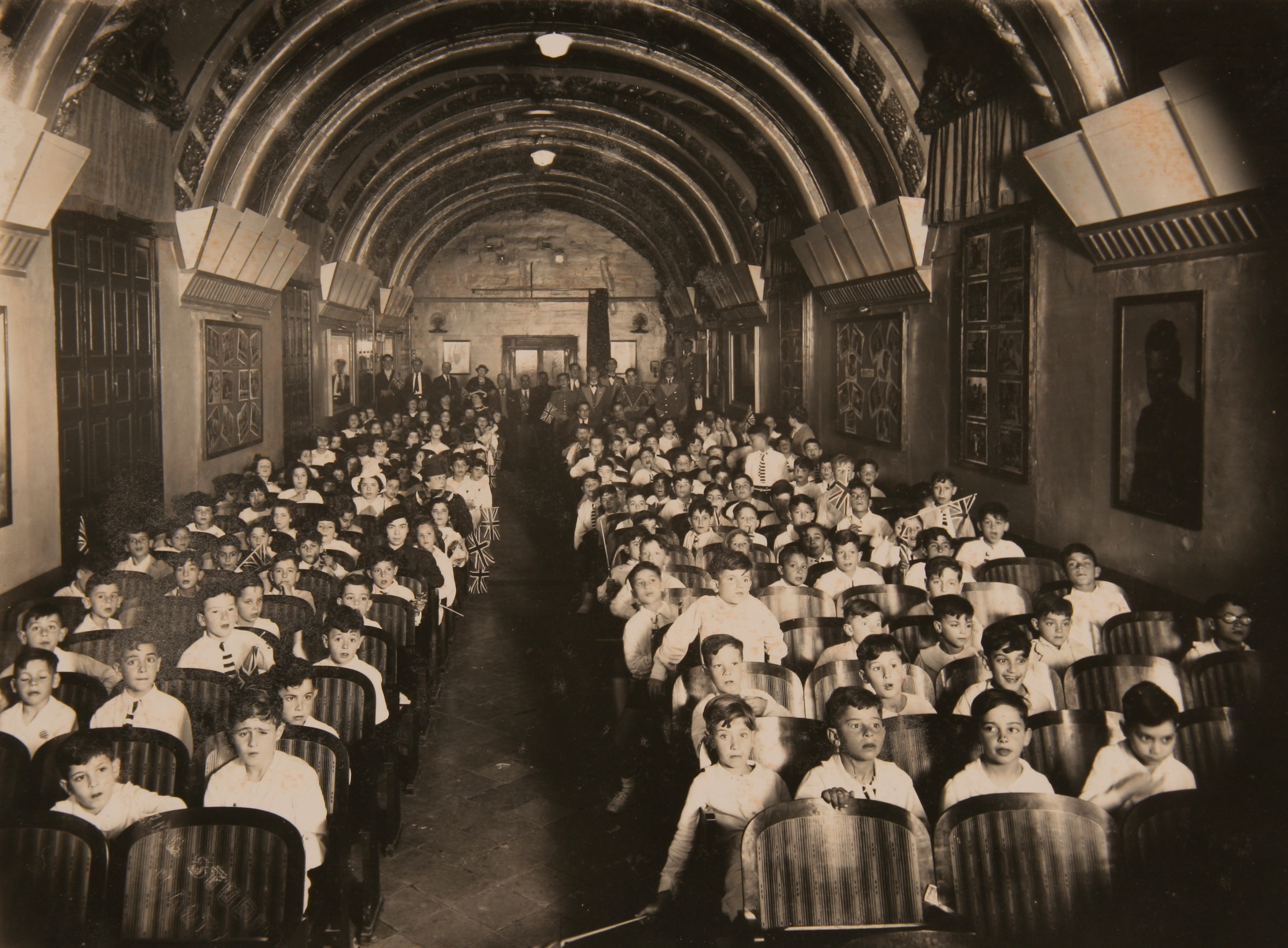Children doing gymnastic in a youth centre in the the outskirts of Barcellona, 1938: